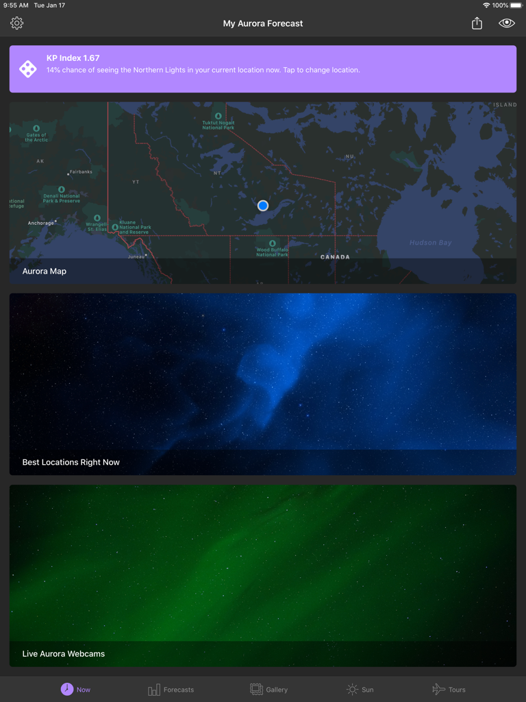 My Aurora Forecast Pro는 오로라를 보기위한 최고의 앱입니다. 매끄럽고 어두운 디자인으로 제작되어 오로라를 볼 가능성이 있는지 또는 태양풍과 고해상도 태양 이미지에 대한 세부 정보를 볼 수 있는지 여부를 알려 줌으로써 관광객은 물론 진지한 오로라 관찰자들에게 매력적입니다. 이 앱을 사용하면 바로 오로라를 볼 수 있습니다.