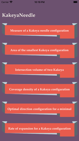 KakeyaNeedle is your essential tool for exploring the unique properties of Kakeya needle configurations. Designed for precision and simplicity, this app empowers users to compute and analyze various aspects of these fascinating mathematical constructs.